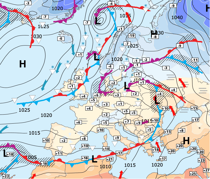 + Dans le même temps, nous assisteront à une légère accentuation du froid sur le reste du pays car le courant continental se renforcera en raison de la proximité des dépressions d'Europe du Sud.