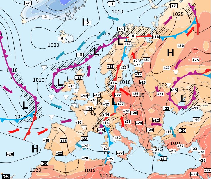 Noms des dépressions et anticyclones prévus pour mercredi 12 mai 2021 à midi (Berlin)