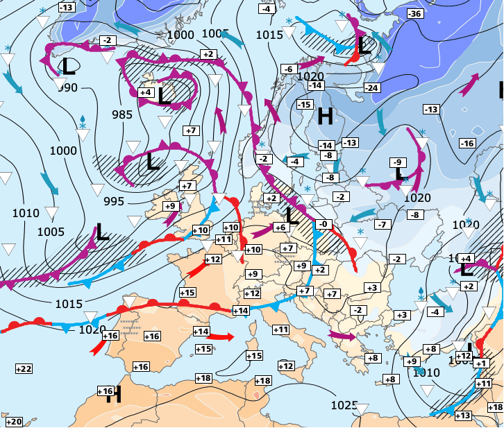 + Ce front sera suivi d’un rafraîchissement très temporaire puisque de l’air très doux remontera directement du Maroc via l’Espagne dés vendredi soir...