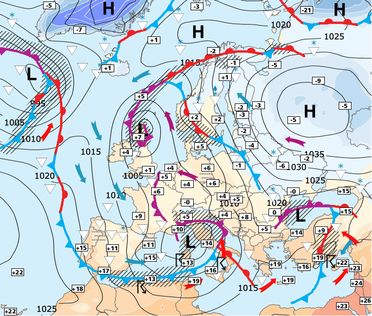 + À partir de vendredi, un régime océanique d'ouest perturbé avec du vent et un redoux se mettra en place par l'Atlantique.