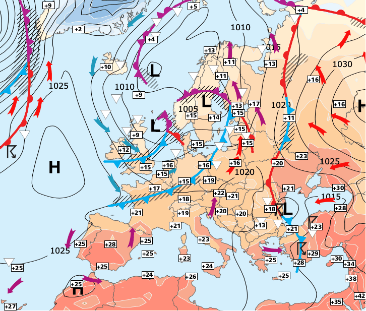 Noms des dépressions et anticyclones prévus pour samedi 10 octobre 2020 à midi (Berlin)