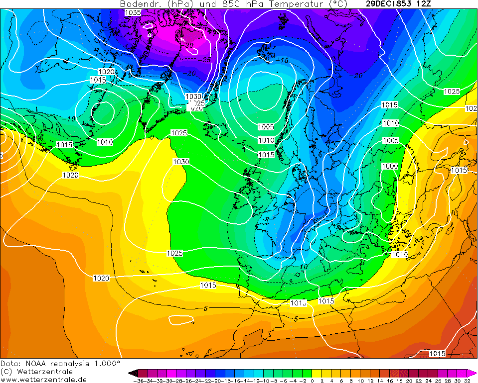 20 au 23 décembre 1853 : Neige au Nord de la Loire puis froid de plus en plus intense, notamment le 29 décembre 1853 avec probablement des -10°C / -15°C en plaine. Recul du froid précédé de neige ensuite.