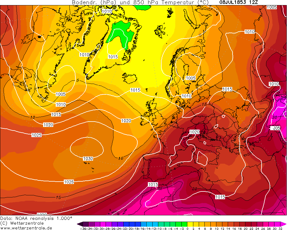 28 au 30 juin 1853 : Très chaud, notamment dans le Sud-est.
