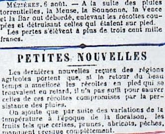 L'été 1879 est pourri car très frais et humide. Des inondations sont signalées dans le Nord-est au mois août.