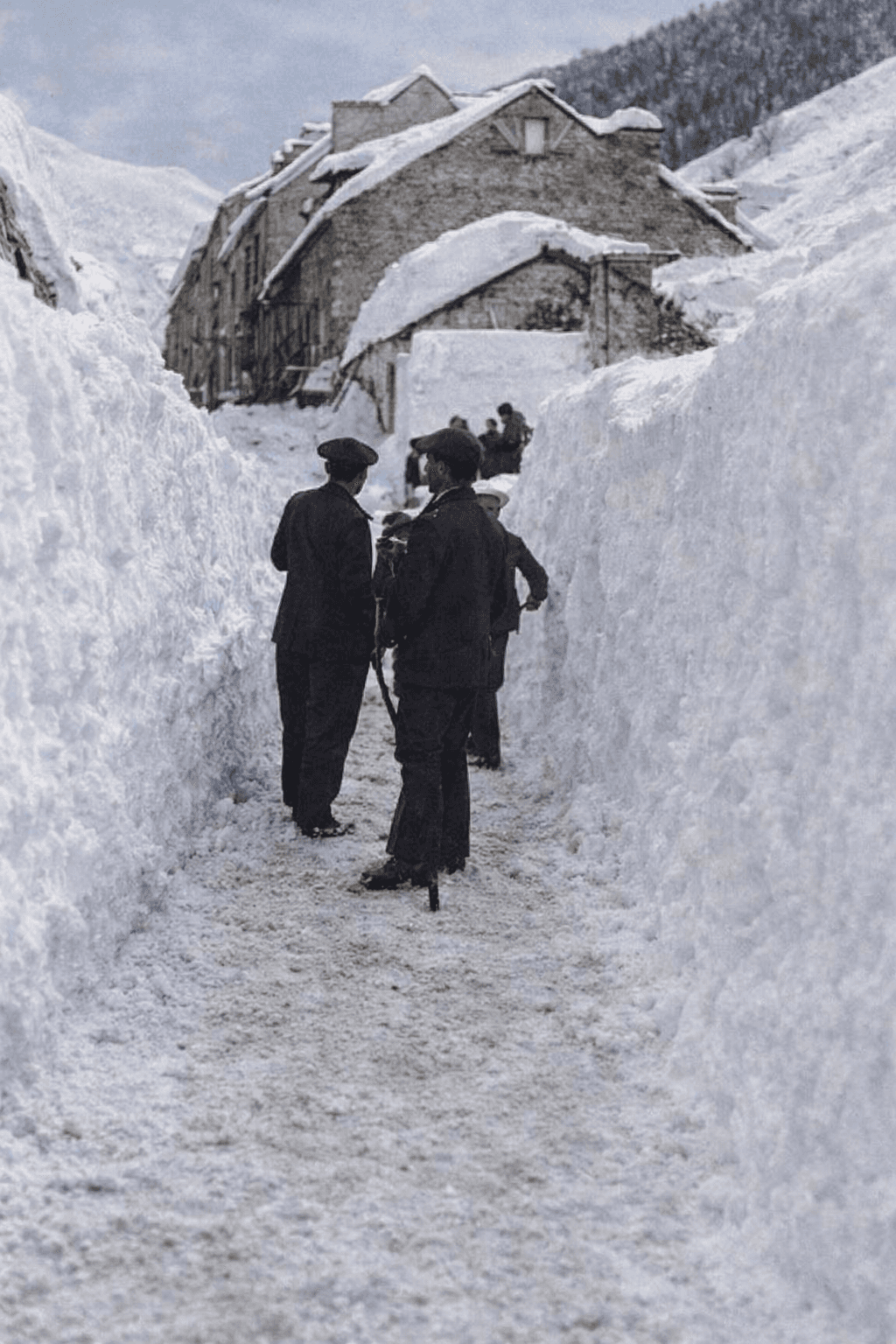 Avalanche à Barèges (Pyrénées) en février 1907 - Tranchée de dégagement au milieu de la rue principale du village