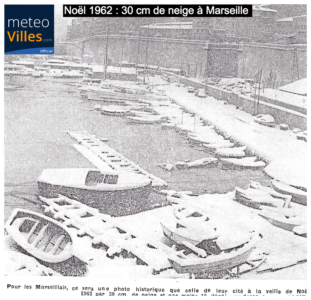 Vague de froid décembre 1962 - La neige recouvre Marseille (notre photo : le Vieux-Port) - document copyright © Meteo-Villes