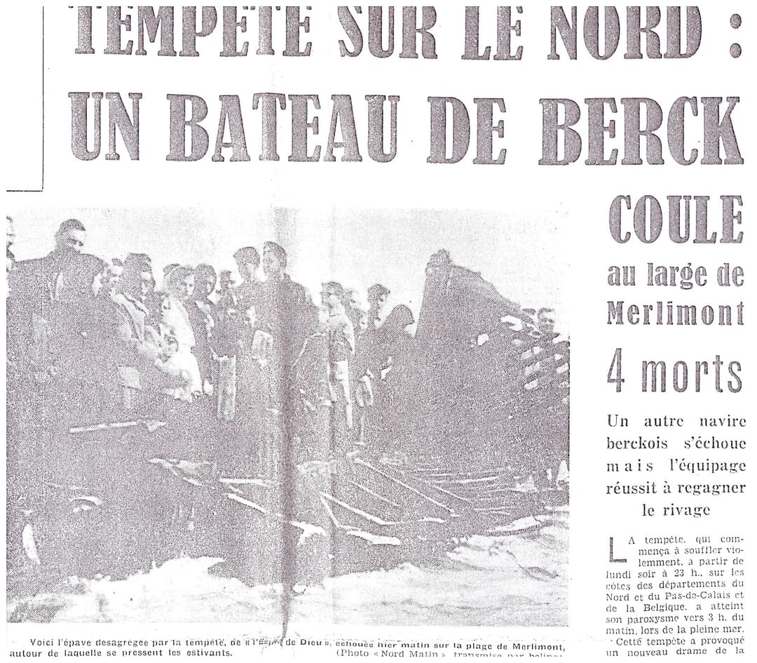 Quatre marins de « L'espoir en Dieu » périssent dans cette tempête estivale de la nuit du 6 au 7 août 1962 - Nord-Matin - document copyright © Meteo-Villes
