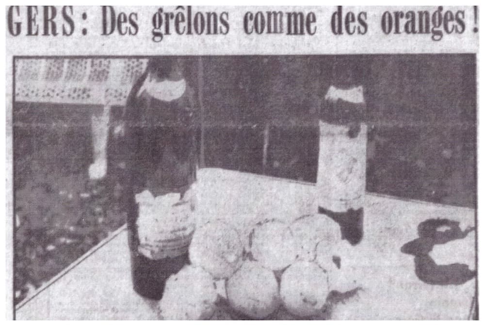 15 septembre 1973 : de très fortes pluies provoquent des inondations dans les Bouches du Rhône (notamment Marseille)- dans le même temps, des chutes de grêlons géants (gros comme des orange) bombardent littéralement certaines communes du Gers. Un violent orage de grêle est signalé à Tiercé (49). En un quart d’heure cinq cents toitures sont littéralement détruites par des grêlons plus gros que des balles de tennis dans un fracas infernal !