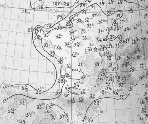 Les fortes chaleurs de la mi-août 1973 - températures maximales de la journée du 13 août 1973