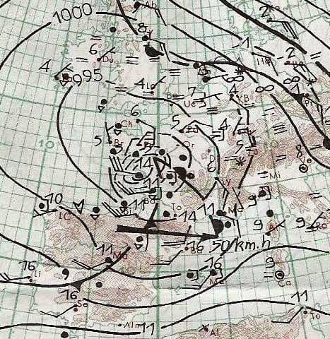 Tempête Chloé du 16 novembre 1984 - analyse météo à 6hTU