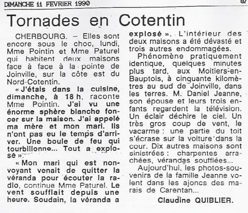 Une tornade ravage le Cotentin le 10 février 1990.