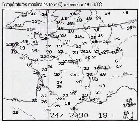 Températures maximales du 24 février 1990