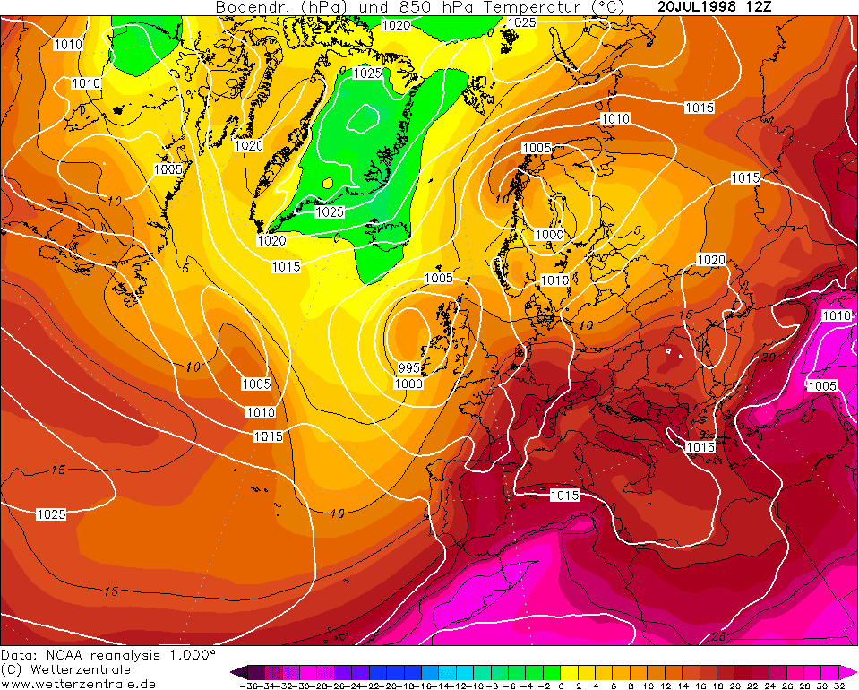 Vague de chaleur et canicule du 19 au 26 juillet 1998 - analyse météo du 20 juillet 1998