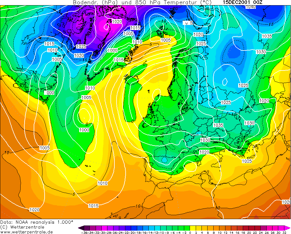 Douceur début février - situation du 6 février 2001 - températures maximales