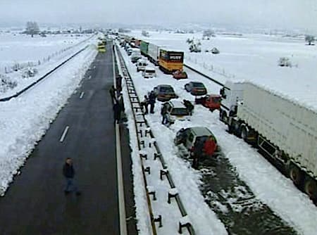 Début de la vague de froid de décembre 2001 - situation météo du 14 décembre 2001 avec neige sur le Languedoc-Roussillon