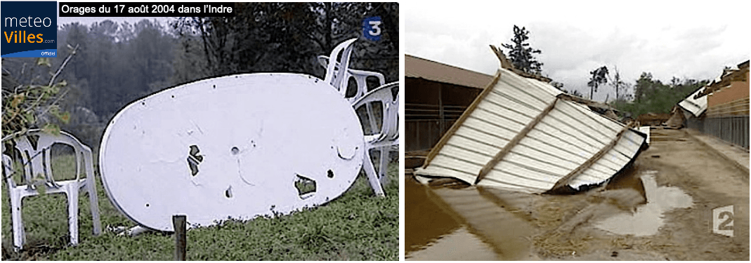 Orages du 17 août 2004 : Les dégâts liés à la grêle et au vent, dans l’Indre