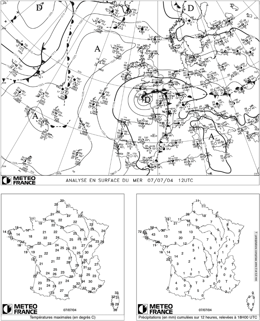 Fin juin au 13 juillet 2004 : les conditions météo sont loin d’être estivales - les températures sont généralement en-dessous des normales de saison notamment sur la moitié nord - du 8 au 12 juillet 2004, on ne dépasse pas les 18 à 20° sur la moitié nord.