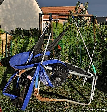 Par exemple, un trampoline est soulevé et projeté au-dessus d’une maison avant de retomber violemment (photo ci-dessous).