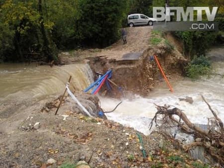 Inondations du 5 juin 2011 dans le Var : Une route coupée par la crue de la Nartuby