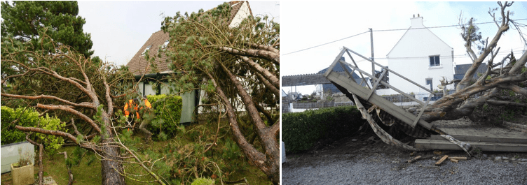 Tempête Nannette du 20 novembre 2016 : Dégâts dans le Boulonnais (Pas-de-Calais) - La Voix du Nord / Arbre déraciné à Quibéron (Morbihan) - Le Télégramme